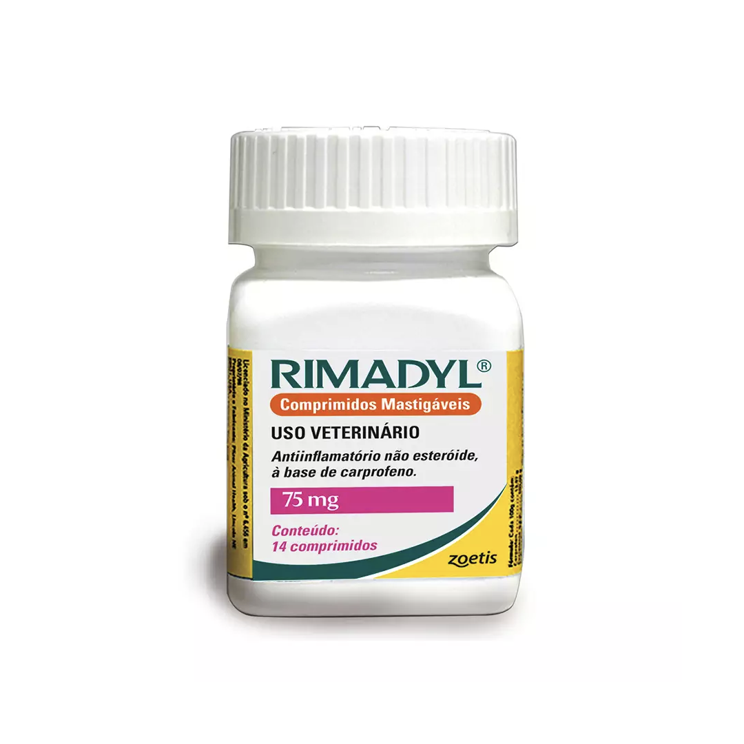 O Rimadyl é um agente não narcótico com atividade anti-inflamatório à base de carprofeno, além disso possui ação antipirética e analgésica e age rapidamente no organismo do seu pet controlando a dor associada a cirurgias ortopédicas e de tecido mole. Ele promove um controle seguro e eficaz da dor causada pela osteoartrite. Não esteroide comprovadamente seguro para uso prolongado em cães. É apresentado em comprimidos Palataveis mastigáveis a caixa contém 14 comprimidos.