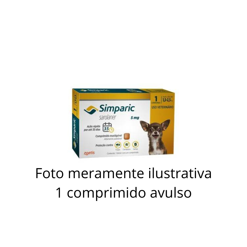 ANTIPULGAS E CARRAPATOS ZOETIS SIMPARIC 5MG 1 COMPRIMIDO AVULSO