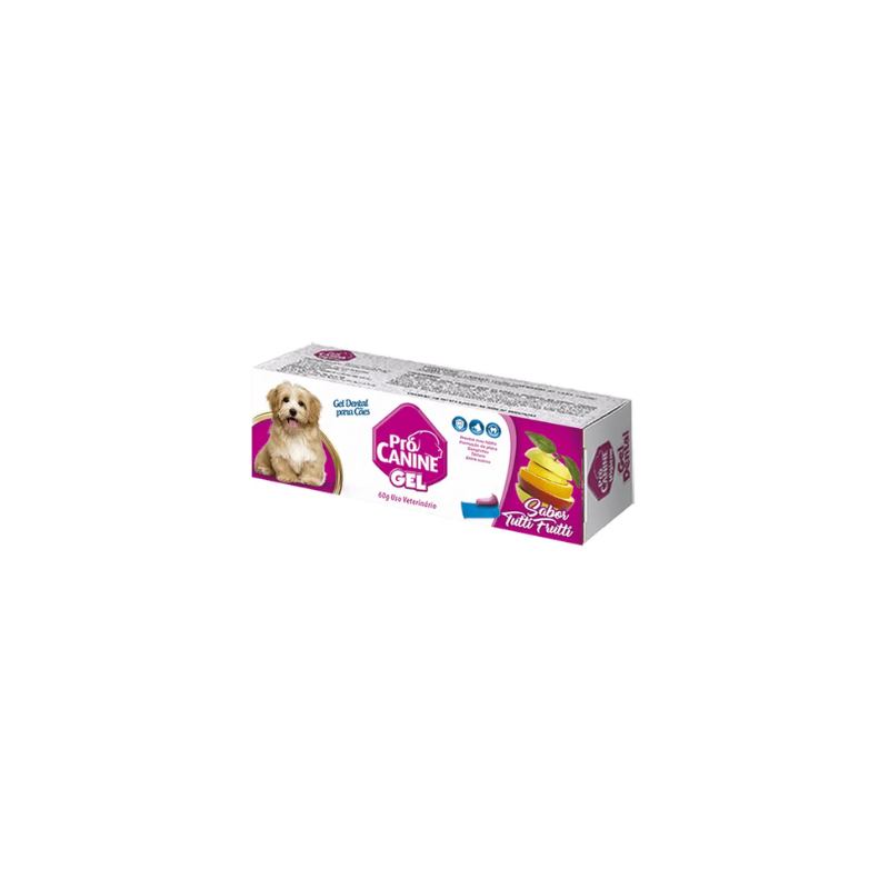 O gel dental Pró Canine, sabor Neutro, foi desenvolvido para a higienização bucal de cães. O Gel Dental ajuda a evitar o mau hálito, previne a formação de placas bacterianas, tártaros e gengivites, além de ajudar no clareamento. Sua composição não contém flúor ou sabões que sejam nocivos aos pets, podendo assim ser ingerido.