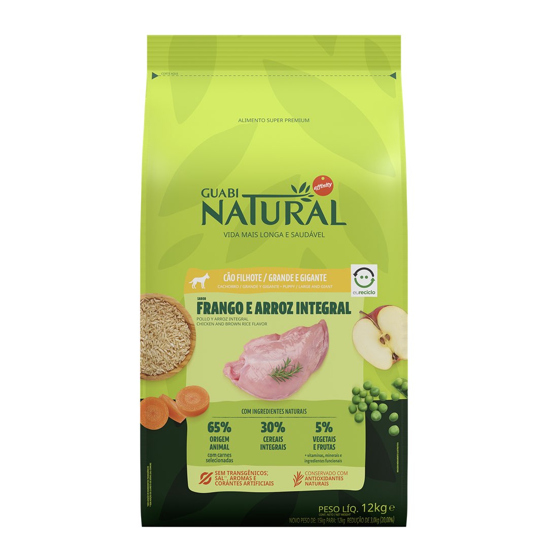 RAÇÃO GUABI NATURAL CÃO FILHOTE GRANDE E GIGANTE FRANGO E ARROZ INTEGRAL
