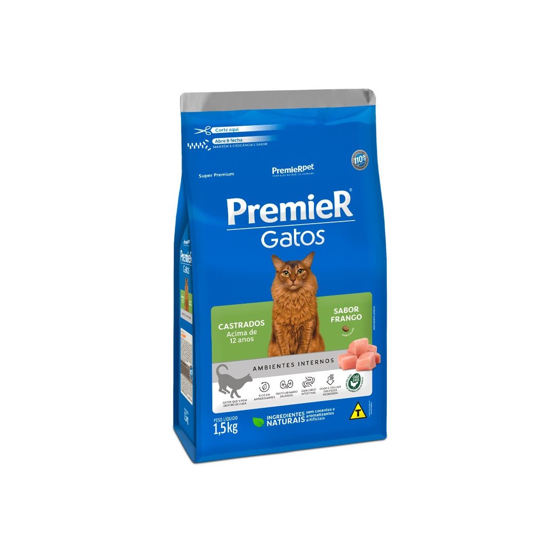 RAÇÃO PREMIER GATOS CASTRADOS + DE 12 ANOS Tamanho:1,5KG