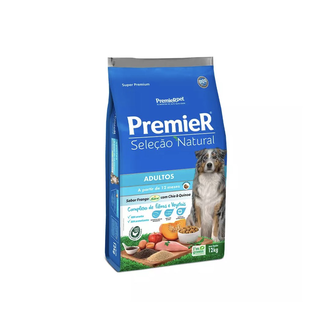 RAÇÃO PREMIER SELEÇÃO NATURAL CÃES ADULTOS FRANGO KORIN, CHIA & QUINOA 12KG